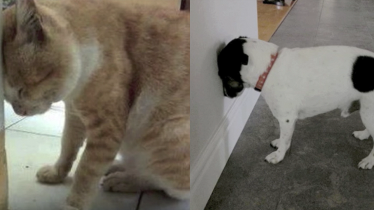 Pet owners witness their dogs and cats doing all sorts of crazy things, from scooting along a carpet to making weird sounds, but one odd behavior is actually a sign that something could be very wrong. If a dog or cat ever pushes its head against a flat wall or some other big object, it's a symptom of a larger issue.