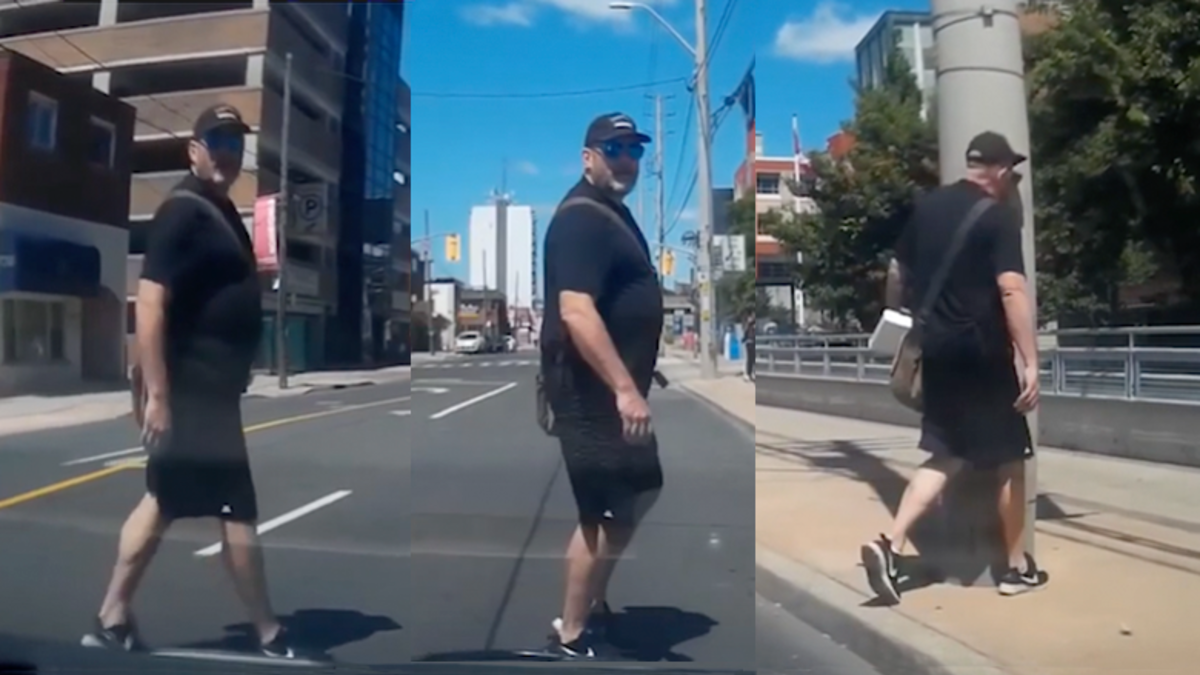 Sometimes, karma can take years to take effect, but there are also those glorious moments where you can watch karma bite back in real time, seconds after someone does something that deserves it. That's just what happened in Hamilton, Ontario and it was all caught on dashcam. A driver was making their way through the streets of the Canadian province when they turned a corner and had to slam on their brakes so they wouldn't hit a man who was jaywalking.